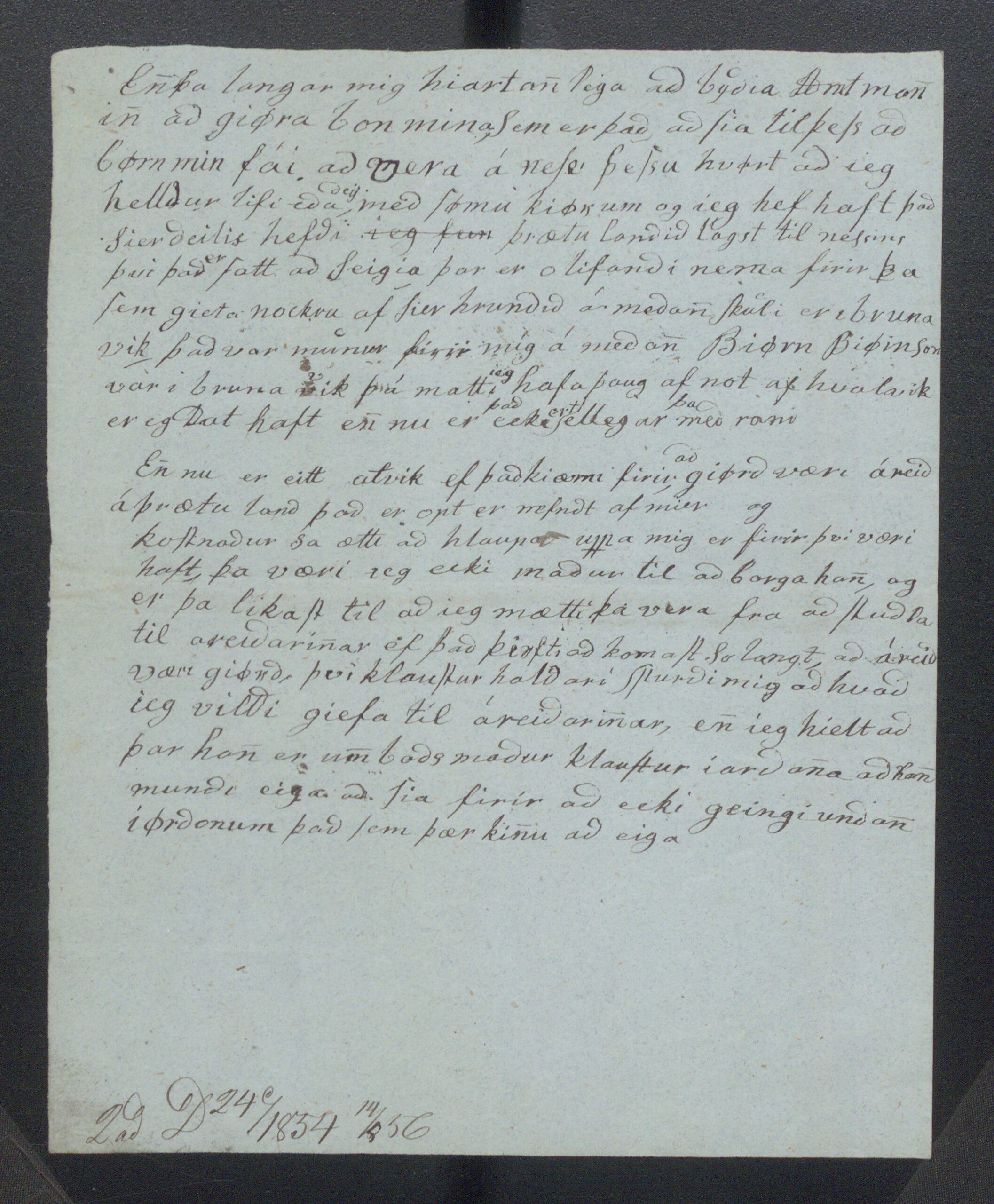 Ennþá langar mig hjartanlega að biðja Amtmanninn að gjöra bón mína, sem er það að sjá til þess að börn mín fái að vera á nesi þessu hvort að ég heldur lifi eða dey, með sömu kjörum og ég hef haft, það sérdeilis hefði ég þeim þrætulandið lagst til nessins því það er fátt að segja, þar er ólifandi nema fyrir þá sem geta nokkru af sér hrundið á meðan Skúli er í Brúnavík, það var munur fyrir mig á meðan Björn Björnsson var í Brúnavík, þá mátti ég hafa þau afnot af Hvalavik er ég gat haft en nú er það ekkert ellegar þá með ráni. En nú er eitt atvik ef það kæmi fyrir að gerð væri áreið á þrætuland það er oft er nefnt af mér og kostnaður sá ætti að hlaupa upp á mig er fyrir því væri haft þá væri ég ekki maður til að borga hann og er þá líkast til að ég mætti þá vera frá að stuðla til áreiðarinnar ef það þyrfti að komast svo langt að áreið væri gerð, því klausturhaldari spurði mig að hvað ég vildi gefa til áreiðarinnar, en ég hélt að þar hann er umboðsmaður klausturjarðanna að hann mundi eiga að sjá fyrir að ekki gengi undan jörðunum það sem þær kynnu að eiga.