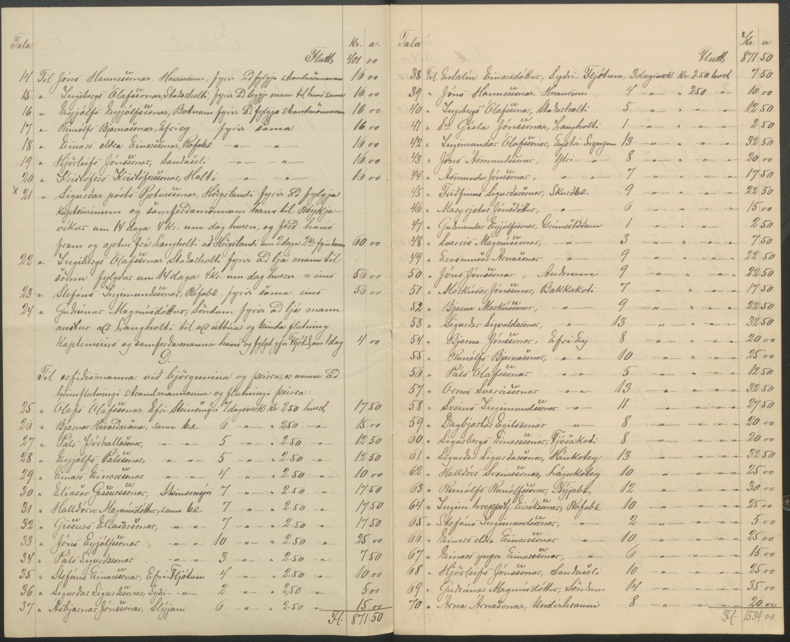 Séra Gísli á Langholti gerði annan reikning fyrir sína þjónustu í þágu strandsins og þar má sjá að hýsing skipstjórans, prestsins og læknisins var mun dýrari en óbreyttra skipverja, hann rukkaði 4,00 kr. á dag fyrir hvern þeirra.